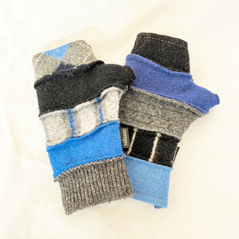 baabaaZuzu Fingerless Gloves in grape, grey and black are made from Vintage Wool w/Soft Fleece Interior. One of a kind.